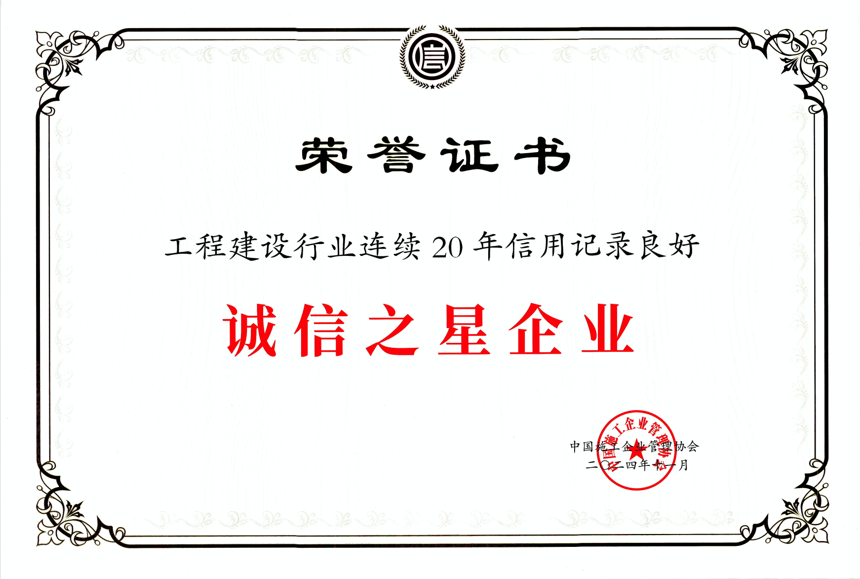 中国施工企业管理协会诚信之星
