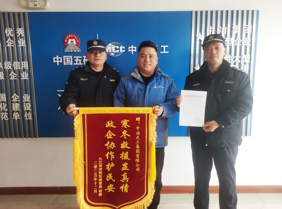 近日,九江市城市管理綜合行政執法局相關領導專程來到華南公司九江水環境治理項目部,將一面印有“寒冬救援顯真情,政企協作護民安”的錦旗送至項目負責人手中,對項目部與分包單位員工英勇救助落水群眾的行為給予高度贊揚。此次救援行動是政企聯動、共護平安的生動實踐,也展現了項目部履行社會責任的擔當。