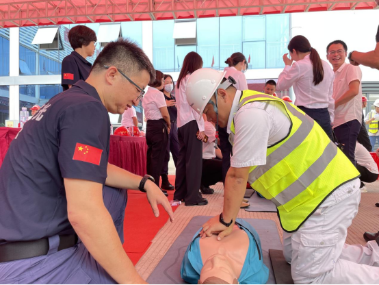 漳州市曙光救援隊員向全體員工講解了應急救援的基本技能、個人安全防護技能、消防安全知識,重點示范了心肺復蘇、人工呼吸、海姆立克急救法的正確操作流程,以及滅火器的使用方法、滅火步驟。提醒大家一定要提高安全意識,加強應急救援知識儲備,提高應急救援能力,掌握必要的救援措施。