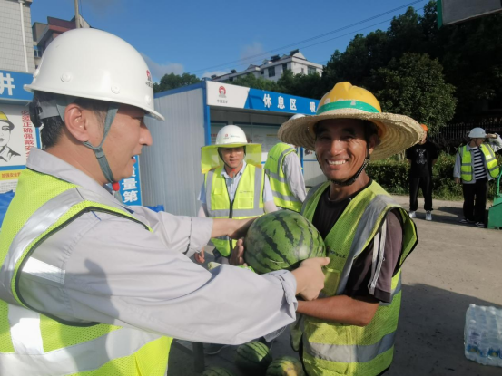為持續(xù)做好高溫作業(yè)勞動(dòng)保護(hù)工作,切實(shí)關(guān)心作業(yè)一線員工,城建公司華東區(qū)域組織開展“工會(huì)送清涼,防暑保安康”慰問(wèn)活動(dòng)。城建公司華東區(qū)域黨支部書記帶領(lǐng)區(qū)域班子前往區(qū)域內(nèi)所有在建項(xiàng)目,為項(xiàng)目一線工人送去西瓜、飲品等消暑降溫物品,切實(shí)讓一線工人感受到工會(huì)組織的關(guān)心及關(guān)愛(ài)。華東區(qū)域采用“提早上班、午休延長(zhǎng)”等措施,避免日照暴曬、疲勞作業(yè)和防止人員出現(xiàn)中暑等情況。項(xiàng)目部按時(shí)對(duì)項(xiàng)目重點(diǎn)區(qū)域的用電設(shè)施設(shè)備、安全防護(hù)設(shè)施、消防器材等進(jìn)行巡檢,充分發(fā)揮“黨建+安全”施工保障機(jī)制,劃分黨員責(zé)任區(qū),持續(xù)深入排查整治安全隱患,建立有效防范措施,為施工一線工友們的健康安全保駕護(hù)航。入夏以來(lái),項(xiàng)目部給在高溫天氣辛勤工作的工友們送上“城建公司愛(ài)心大禮包”,禮包內(nèi)含有洗漱套裝、清涼油、毛巾、水飲、西瓜等防暑降溫物品,給工友們帶來(lái)“清涼”問(wèn)候。