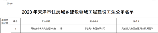 近日,天津市住房城鄉(xiāng)建設(shè)委公布了“2023年天津市住房城鄉(xiāng)建設(shè)領(lǐng)域工程建設(shè)工法”獲獎結(jié)果,城建公司裝備公司兩項工法均榮獲該工法。