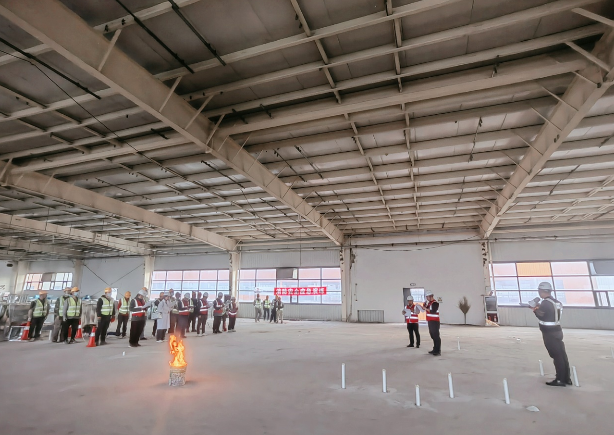 本次應急演練設置了應急聯絡組、應急疏散組、應急搶險組、應急救護組、應急保障組和應急安置組,明確了各組工作職責。演練模擬場景為廠房二層因電焊作業引燃周邊材料,火勢迅速蔓延,現場濃煙彌漫,安全員發現火情后立即啟動應急預案,疏散組引導工人沿逃生路線撤離至安全區,搶險組攜帶滅火器進行初期撲救,醫療組對“受傷”工人實施心肺復蘇并且擔架轉運。10分鐘內,所有人員安全撤離,火情被成功控制。