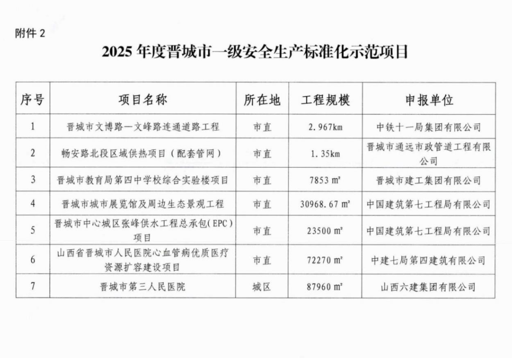 中原公司高平市第十中学校建设项目被评为“2025年度晋城市一级安全生产标准化示范项目”