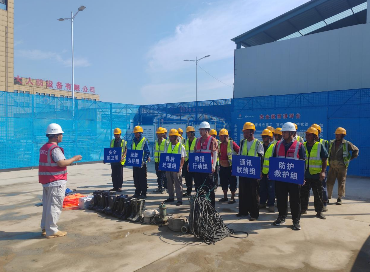 為應對汛期施工安全,提高項目應對突發洪水災害的能力,確保施工人員的生命安全和項目建設的順利進行,7月19日,城建公司年產2萬臺(套)各類人防設備項目開展防汛應急演練。