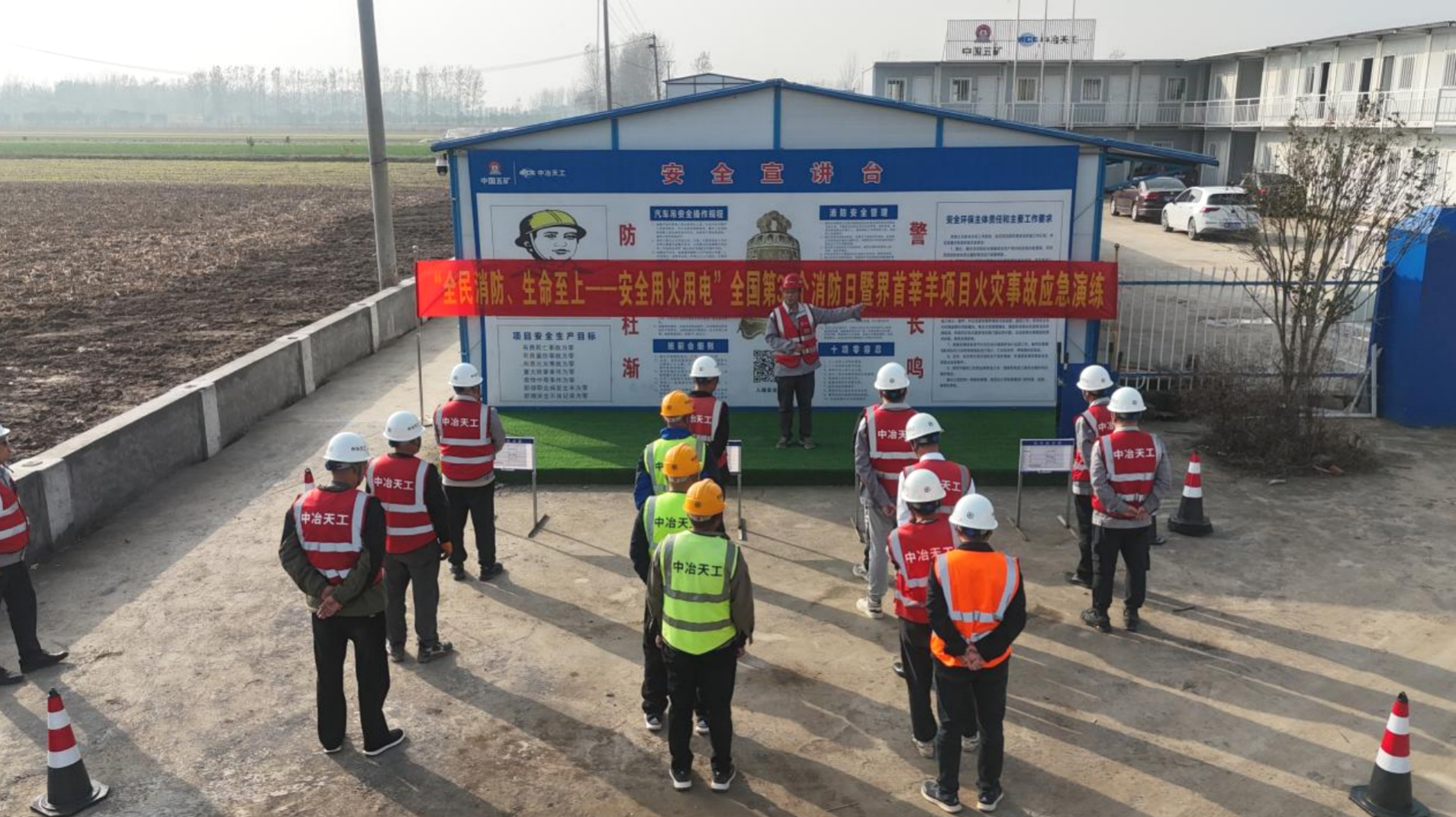 秋去冬來、天干物燥,中原公司安徽界首市莘羊繁育基地項目進入冬季消防安全關鍵時期。11月9日是第34個全國消防日,為進一步增強全員消防意識與實戰應對能力,項目部圍繞“全民消防、生命至上——安全用火用電”主題,組織開展火災事故應急演練,全面筑牢冬季安全生產防線。